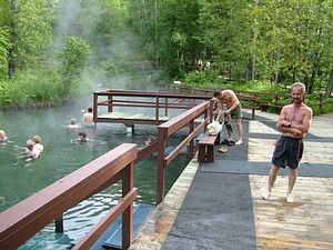 Beim Tankstopp am Muncho Lake, dem wahrlich blausten aller Seen, trafen wir Marc aus Montreal, der auch auf einer BMW 1150 GS reist. Er ist auf dem Weg zum Nordmeer. Aus einer kurzen Zusammenfahrt zu den Liard River Hot Springs ergab sich "mehr".